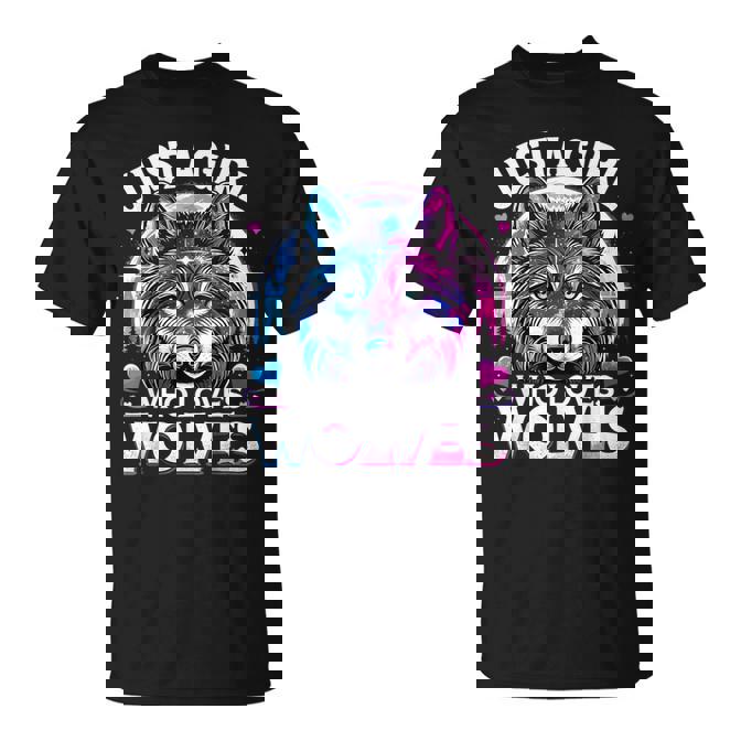 Just A Girl Who Loves Wolves Galaxy Space Wolf T-Shirt