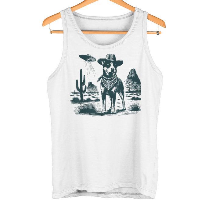 Vintage Heeler UFO Western Cowboy Australian Cattle Dog Dad Tank Top