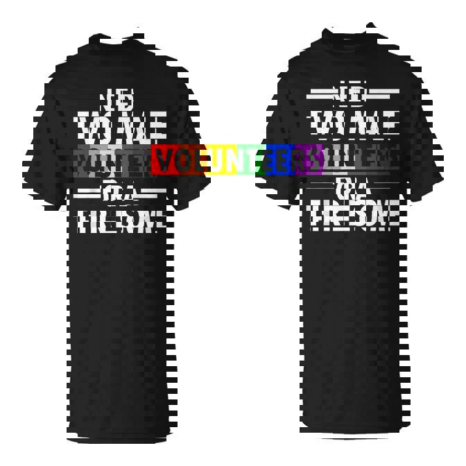 Need Two Male Volunrs For A Threesome Embarrassing Lgbtq T-Shirt