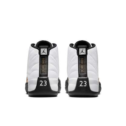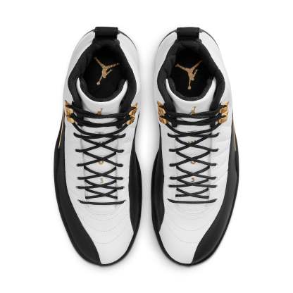 Jordan Brand revisits one of the most popular and recognizable original Air Jordan colorways of all time, but with an added twist that adds a subtle touch of regal luxury. The Air Jordan 12 “Royalty” draws strong comparisons to 1997’s “Taxi” release by keeping with the same white leather upper and faux-lizard textured mudguard. What’s missing is the hit of Taxi Yellow on the heel racing stripe and the exposed carbon fiber plate at the mid-foot, as well as the red Jumpman logo that sits at the toe. SKU: CT8013-170 Release Date: 13 Nov 2021 Color: White/Black-Metallic Gold