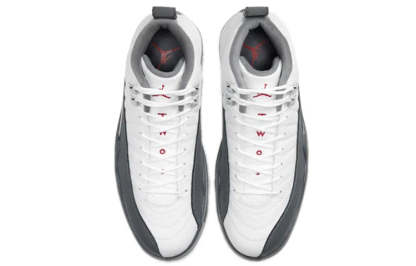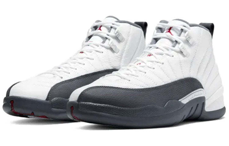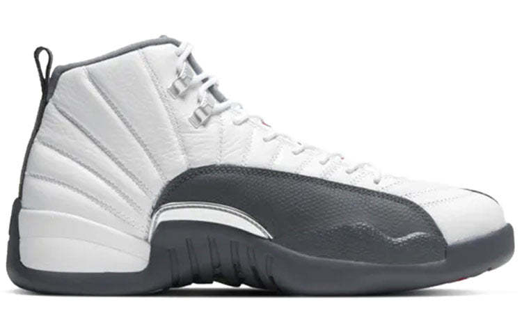 The Air Jordan 12 Retro 'Dark Grey' blends classic style with a modern aesthetic. The white, grey and red colorway is inspired by Japan's Rising Sun Flag, and the ribbed upper is made of leather and nubuck for a comfortable fit.
