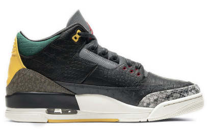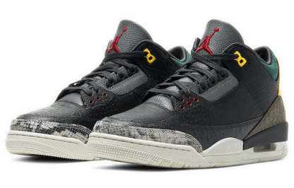 The Nike Air Jordan 3 Retro revisits the "Animal Instinct" design and gives it an upgrade. This time around, the 2.0 version features reptilian-inspired prints all over the upper. Splashes of green, yellow and red further completes the look.