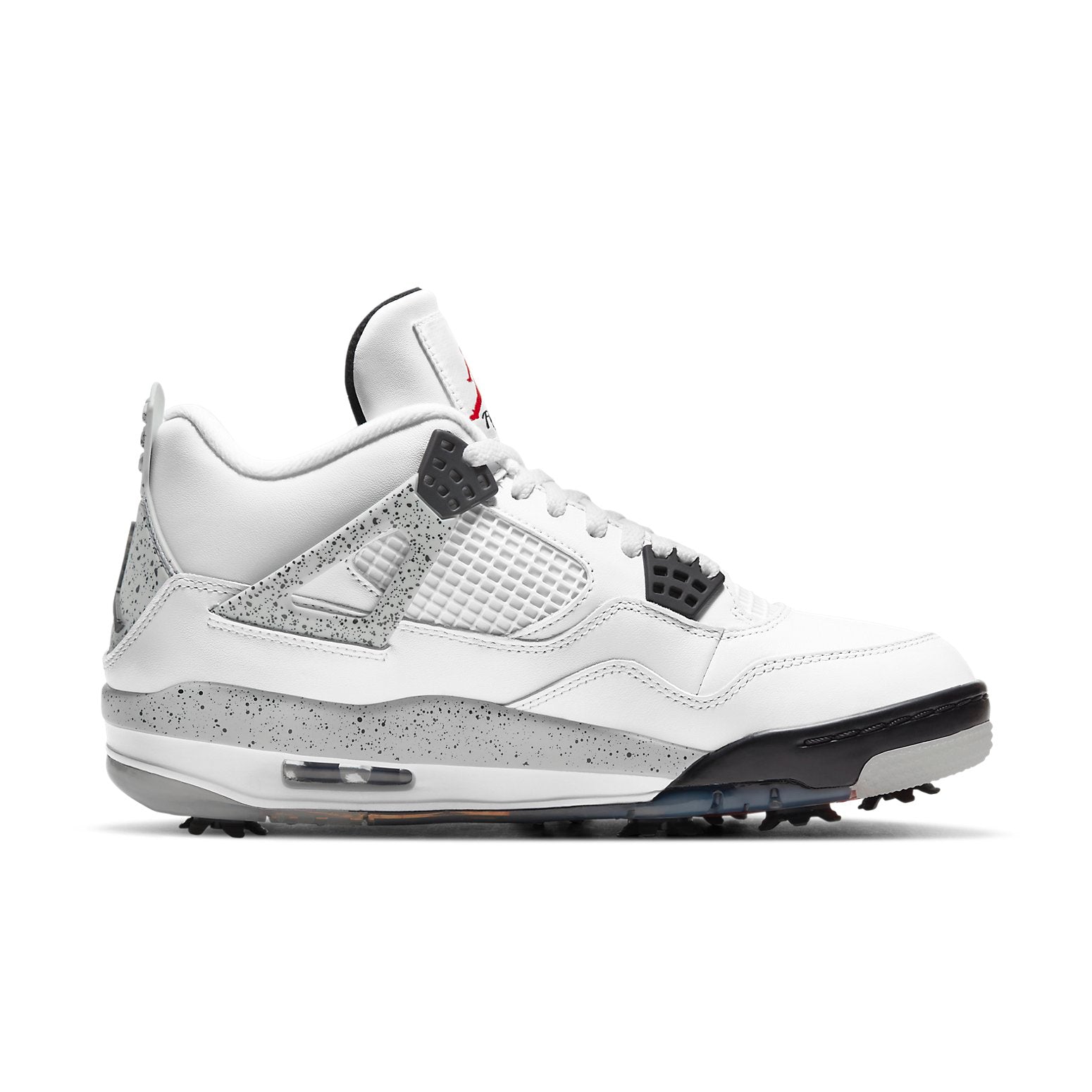 This Air Jordan 4 Golf “White Cement” is dressed in a White, Tech Grey, Black, and Fire Red colorway. A fresh base of smooth white leather disrupted by grey and black accents completed with speckled inserts giving a textural opposition to the otherwise minimalist design. SKU: CU9981-100 Release Date: March 4, 2021 Color: White/Tech Grey-Black-Fire Red